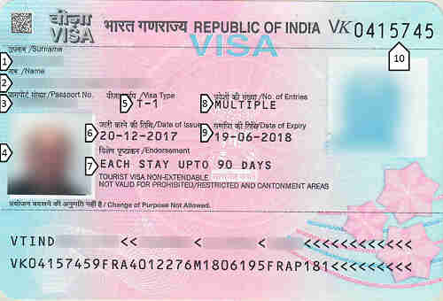 Lire et interpréter le visa obtenu pour l'Inde sans se tromper